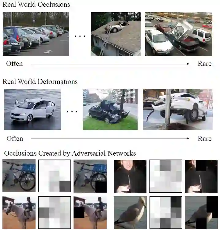 图 1:在论文中,我们提出了使用对抗网络来生成带有遮挡和变形的例子,从而让物体探测器难以进行分类。随着探测器的性能逐渐提升,对抗网络产生的图片质量也在提升。通过这种对抗策略,神经网络识别物体的准确性得到了进一步提升。