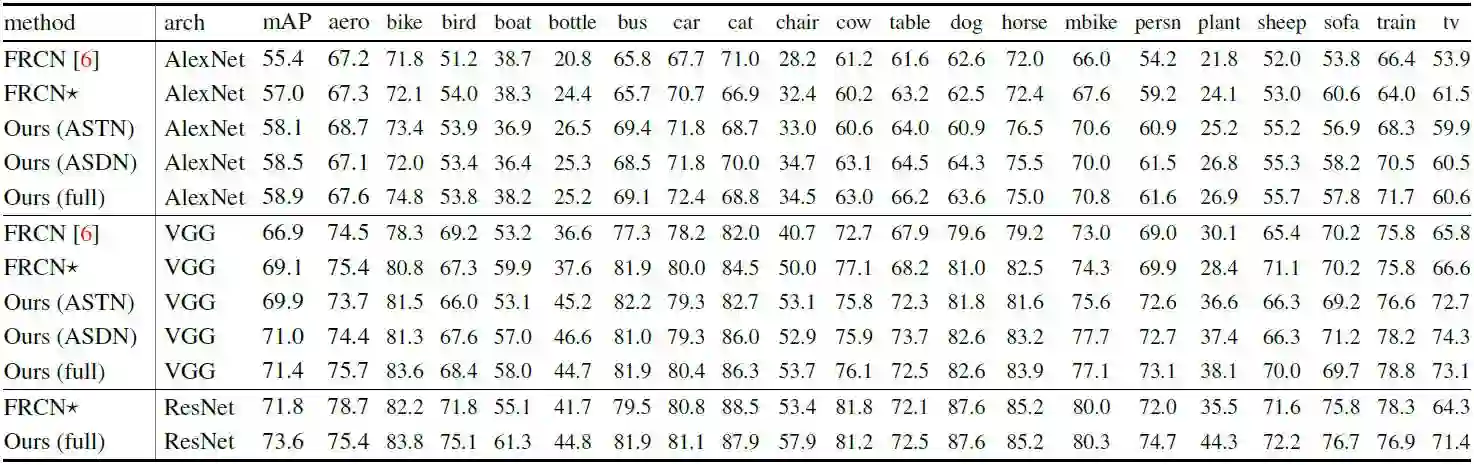 表格 1:VOC 识别测试的平均精度,FRCN 指使用我们训练方式的 FRCN 成绩。