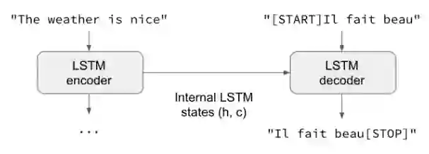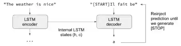 一般来说,输入序列和输出序列的长度是不同的(例如机器翻译),并且需要有完整的输入序列才能开始预测目标。这需要一个更高级的设置,这就是人们在“序列到序列模型”时经常提及的没有上下文。下面是它的工作原理: