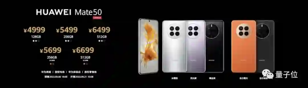 搭载基本款Mate50型号4999元起,影像能力等升级的Mate50 Pro则是6799元起。