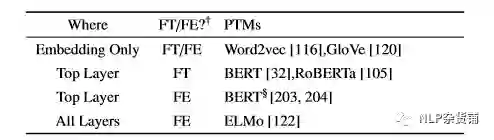 选择合适的层。预训练模型不同层的结果可能会具有不同的信息,比如BERT在底层的encode更偏向于句法信息,上层的encode则偏向于语义信息。通常有三种选择的方式:只选择embedding层,选择最顶层,选择所有层。