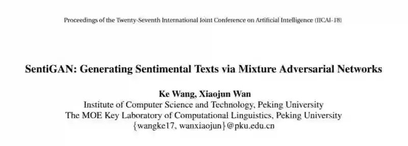 在上午的开幕式中,大会公布了杰出论文(Distinguished Paper)。与往届不同,今年的 IJCAI 大会未颁发“最佳论文”、“最佳学生论文“等奖项,而是 7 篇杰出论文。本文选择了北京大学计算机科学技术研究所的《SentiGAN: Generating Sentimental Texts via Mixture Adversarial Networks》进行解读。