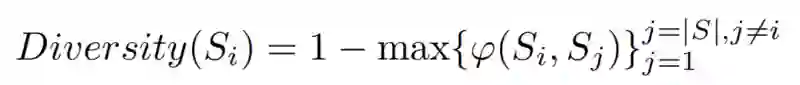 多样性:我们希望生成器能够生成具有多样性的句子。给定生成句子集合 S,我们定义句子 Si 的多样性如下:
