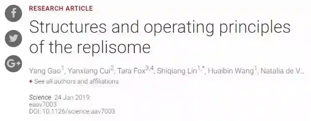 DNA是生命遗传信息的载体,它的复制是生命繁衍过程当中最重要的一步。关于DNA复制分子机制的研究一直是生命科学中最基本的问题之一。近日,美国国立卫生研究院杰出研究员杨薇的课题组揭示了DNA复制体的结构和工作原理,相关成果发表在《科学》上。