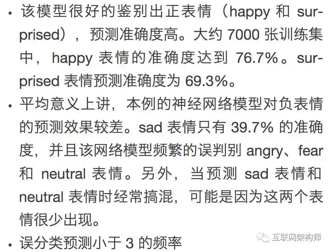训练模型的数据集使用的是 Kaggle 面部识别挑战赛的数据集(2013 年)。它由 35887 张面部图片组成,48x48像素灰度图片,标注为 7 类基本表情: happy, sad, surprise, fear, anger, disgust, and neutral。
