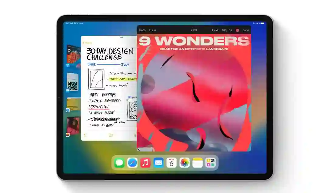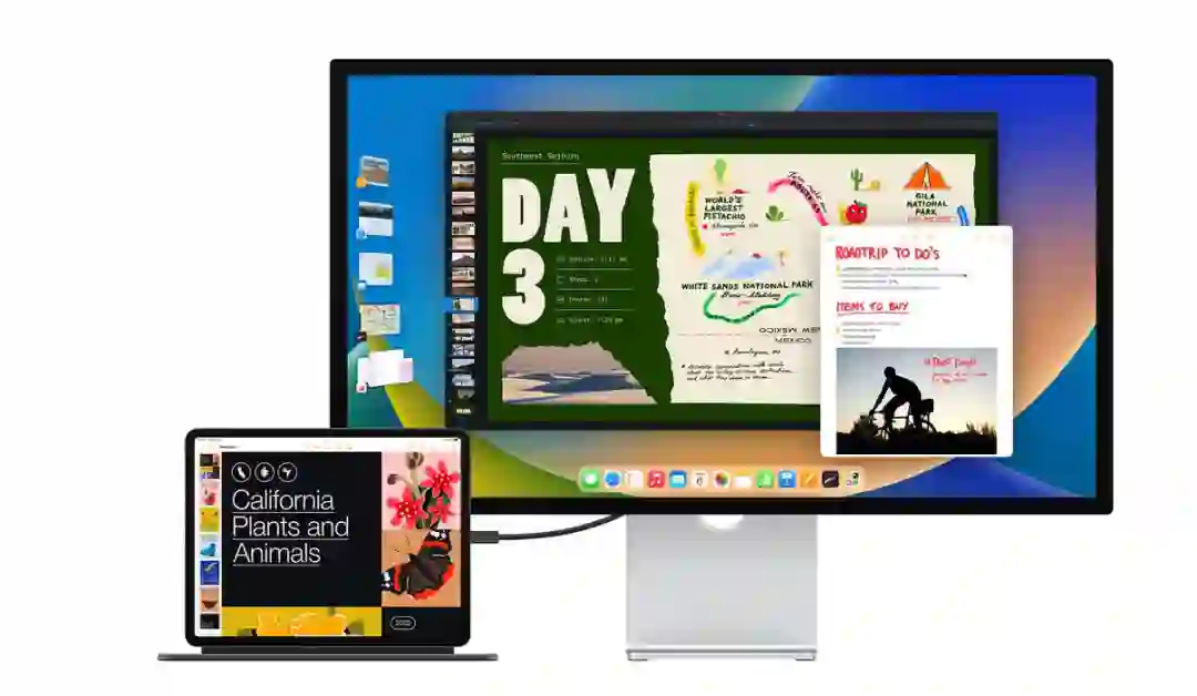 据苹果官方介绍,台前调度功能是一项新的多任务处理方式,用户可根据自己的需要灵活调整窗口大小,并且可在同一个视图中叠放多个窗口。这项功能的其他特性还有:用户轻触一下屏幕、鼠标或触控板,即可切换各个 app;可根据任务或项目设置不同的 app 群组,然后调整它们的位置和大小,并叠放起来;可将 iPad Pro 或 iPad Air 连上外接显示器,实现最高达 6K 的分辨率。