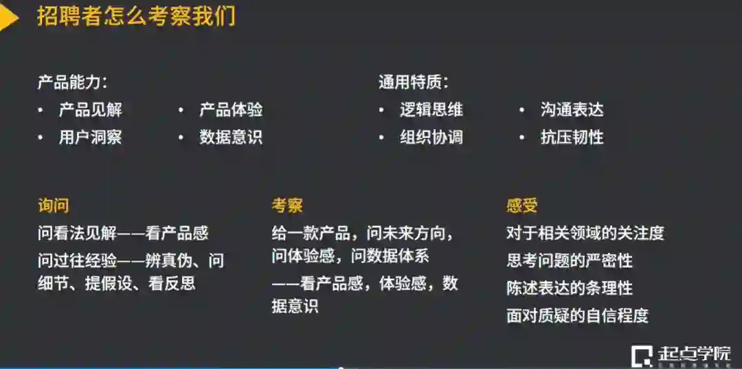 这些问题的产生,一方面是对产品经理岗位不了解、面试准备不充分导致的,另一方面则是因为没有站在面试官的角度去思考,ta的提问究竟想考查自己哪方面的能力或思维,导致无法展现出自己的求职优势。
