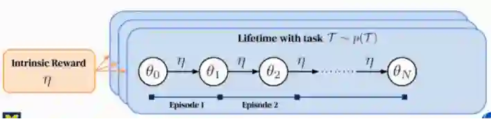 内部奖励(Intrinsic Reward):在一个生命周期内被用来训练智能体策略(Policy),策略不能看到外在奖励,只能利用内部奖励更新参数。