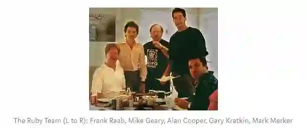 在我从事Ruby开发的所有时间里,我与微软签订了严格的保密协议,不能告诉任何人我在做什么。在将近四年的时间里,我一直保持沉默,尽管我知道Ruby会改变编程领域。VB发布后不久,我的朋友Mitchell Waite打电话给我,问我是不是VB中提到的那个Cooper。我承认是我,他邀请我吃午饭,我们在旧金山见面,我向他讲述了我的故事。当我讲完时,他惊讶地看着我说:“你成为了Visual Basic之父!”