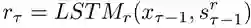 全局语义解码层(图2中绿色区域)捕获输入信息的整体语义信息,保证生成回复的整体语义连贯性和语义正确性。全局语义解码层由单向LSTM组成(编码器输出的全局知识向量K作为初始隐状态),输入上一时刻生成的单词xτ-1和隐状态s,输出解码当前词的全局语义信息rτ: