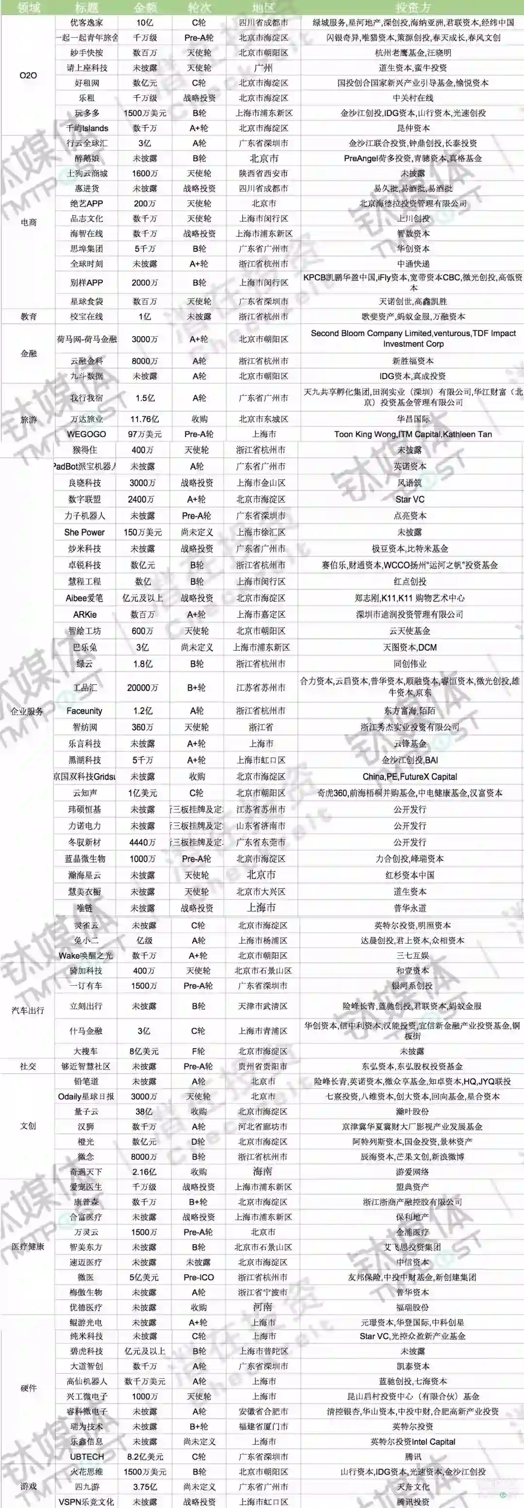 周报:第一时间汇总每周企业投融详情,综合每周投融领域概况;