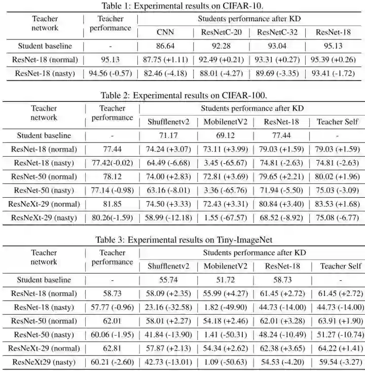 Nasty Teacher 的训练目标是努力创建一个特殊的教师网络,其表现与正常的教师网络几乎相同,但是任何学生网络都无法从中提取知识。作者提出了一种简单而有效的算法,称为 "自我破坏知识蒸馏 (Self-Undermining Knowledge Distillation)"。