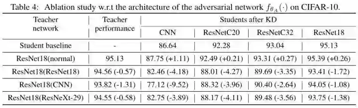 对于教师模型对应的 counterpart 的选择,可以直接选择与教师模型相同的架构。至于更新规则, 的参数通常是预先训练好的,在对抗性训练时固定,只更新 的参数。请注意,所选温度 不必与 相同。