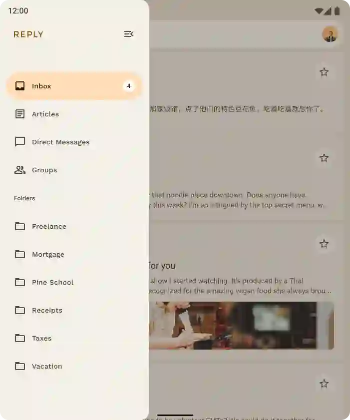 您可以查看 Reply Compose 示例,详细了解自适应应用和窗口大小类的实现: