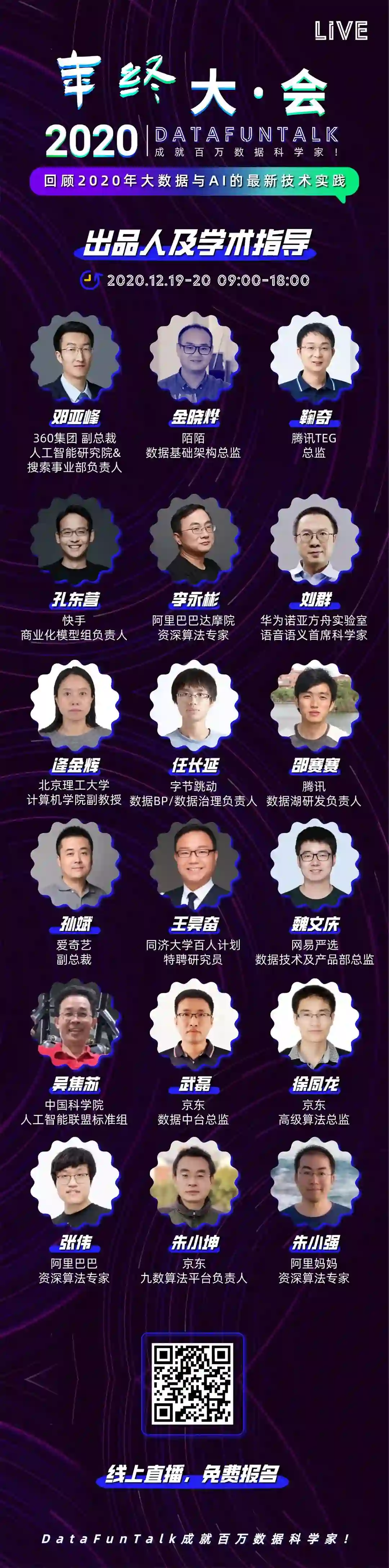 导读:12月19-20日,09:00-18:00,一年一度的 DataFunTalk 年终大会来啦!受疫情影响,以及为了惠及全国各地的小伙伴,本次大会将继续在线上召开,将有超过90位嘉宾,参与本届大会。今天,小编将用3万字,一次为你解锁本次大会的所有议题!(报名方式见文章底部)下面就和小编一起了解下吧: