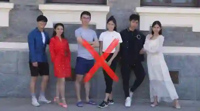 从左到右的错误示范依次是:休闲装,扎眼颜色内搭,凉鞋短裤,运动装,棒球衫,以及连衣裙