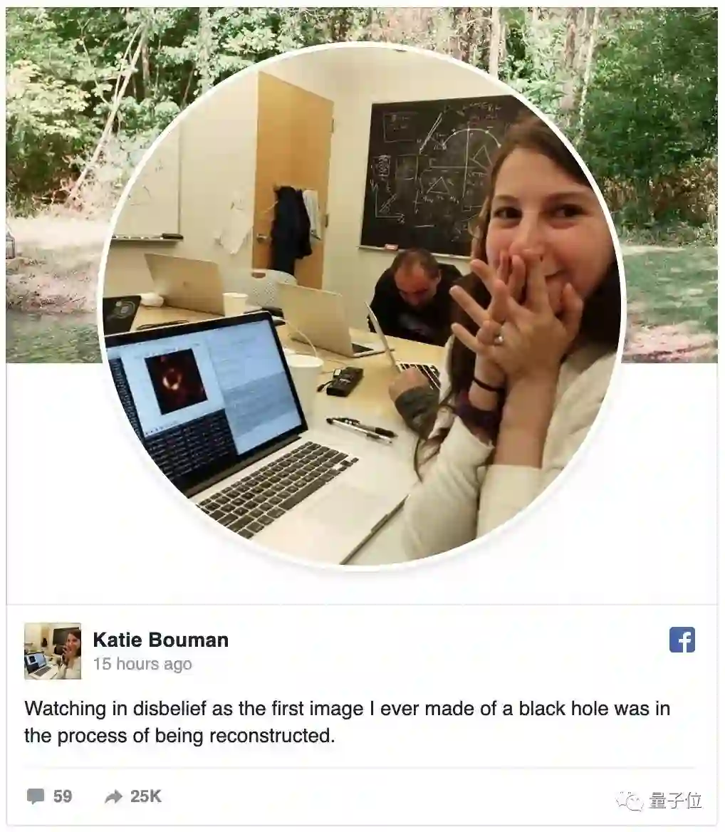 这位小姐姐名叫Katie Bouman(凯蒂·布曼),今年29岁。她带领算法团队“洗”出了这张照片,也成了第一批“看到”黑洞的人类之一。