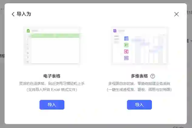 接触过 Excel,上手多维表格就已经成功了一半。如果你已经有了原始数据,甚至可以在飞书文档右上角的「新建」菜单里,直接将 Excel/CSV 格式文件导入为多维表格。