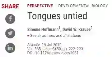 另外,纽约理工学院解剖学系Simone Hoffmann等人在Science 发表题为“Tongues untied”的点评文章,该点评文章系统介绍了研究成果,同时指出该研究为进一步研究咽弓进化发育的相互依赖性或独立性打开了大门。