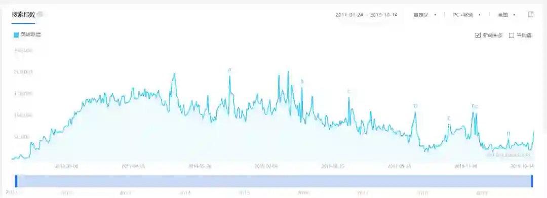 回顾这些年《英雄联盟》的百度指数,可以见到高峰期是在2013到2016年之间,但这两年的热度有着明显下降。