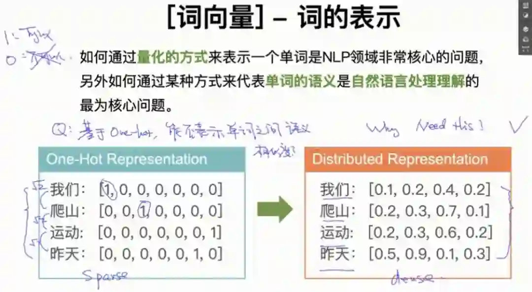 答:不可以。因为,我们不管是通过欧式距离还是通过余弦相似度,计算用One-hot表示的词编码都是一样的距离,不能区分单词之间语义的相似度。比如,计算:我们、爬山的欧式距离、余弦相似度: