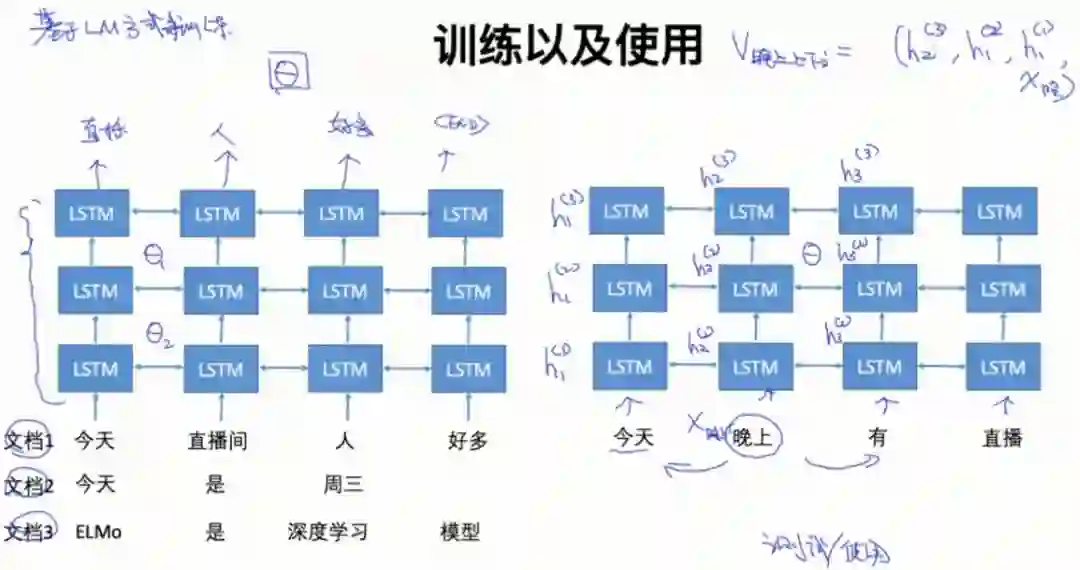 基于语言模型的训练:对于一个语言序列 ,我们有 可以预测 ,有 可以预测 ,有 可以预测 ,有 可以预测 。我们可以把这样一个过程写成目标函数 ,目标函数基于语言模型的目标函数进行训练的模型叫做基于语言模型的训练方式。
