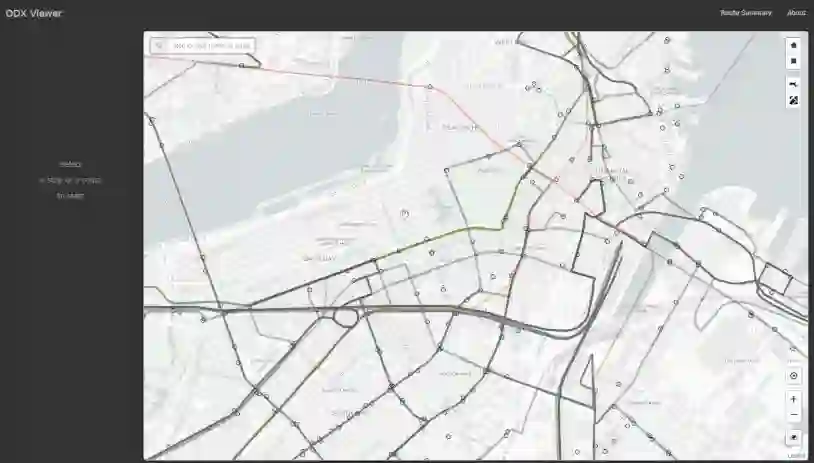 ODX可视化工具是对ODX数据进行可视化的网页工具。 通过选择站点或路线,服务规划员可以知道任意时间段或支付方式下的乘客在哪里上车、下车和转乘。在结果分析上,不仅提供了站点或路线的分析,比如多少乘客在哪些站点上下车、从哪条线路转乘到哪条线路,也包括区域分析,比如乘客是从哪一块区域乘车到哪一区域。