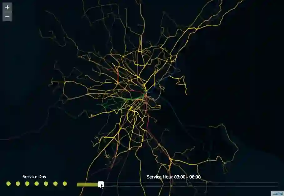 公交路况可视化工具填充了这个信息需求。我结合了拥堵数据和公交车辆位置数据,调度员通过看到服务范围内的实时运营全貌,不仅能知道车辆是否遇到了堵车,还能预见车辆的堵车并提前采取措施。