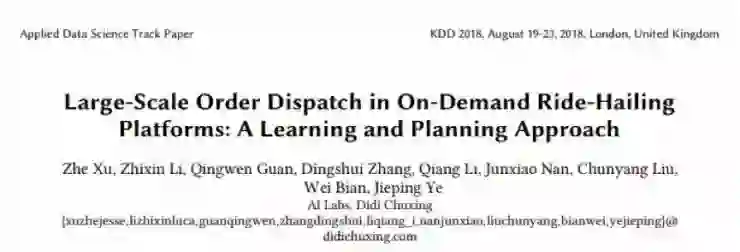 昨天,我们重点对滴滴 KDD 2018 Poster 论文《Learning to Estimate the Travel Time》进行了介绍,本文则是对滴滴 KDD 2018 Oral 论文《Large‑Scale Order Dispatch in On‑Demand Ride‑Hailing Platforms: A Learning and Planning Approach》的详细解读。