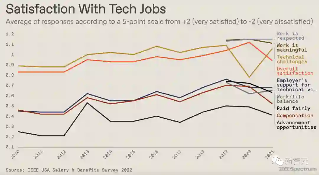 IEEE-USA 调查的工程师的总体工作满意度在 2021 年下降,主要与薪酬和晋升机会有关。然而,对工程工作的技术挑战的满意度显著提高。