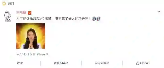 对此,王思聪还在微博中回应:“为了能让杨超越c位出道,腾讯花了好大的功夫啊!”