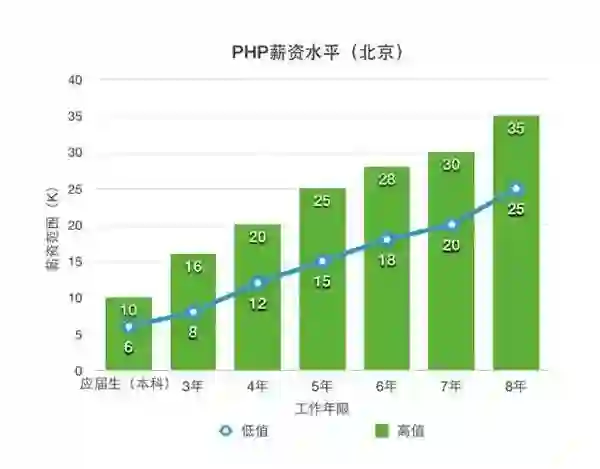 3-5年的PHPer会出现分水岭,薪资跨度较大,跟程序员的自我修养有比较大的关系,此段位的程序员由于经验和精力等原因,会成为公司coding的主力,部分中小型公司也有机会转型到技术管理。当然也有部分有情怀的程序员开始创业。