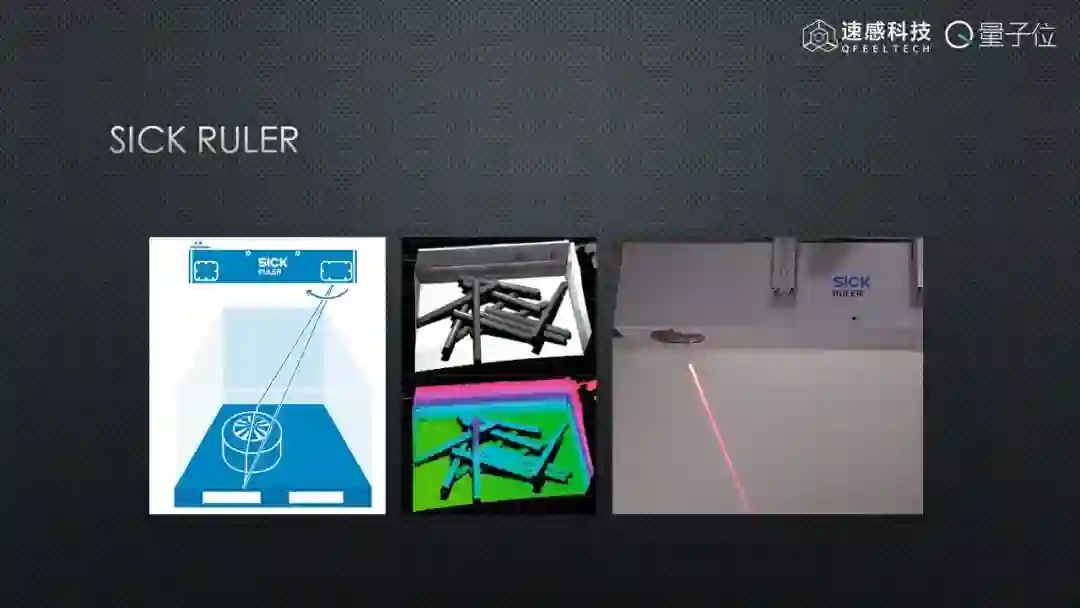 比如SICK公司的一个叫RULER的产品,它的逻辑是有一颗摄像头,还有线激光,但是它的线激光会打到一个旋转的镜子上,通过镜子的旋转,使线激光反射到空间中不同的位置。