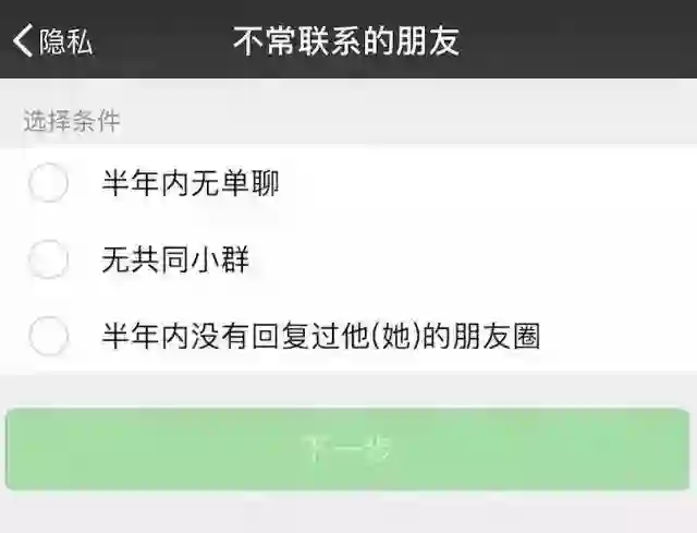 据悉,在“不常联系的朋友”新功能中,系统将会自动区分出三类联系人,“半年内无单聊”、“无共同小群”、“半年内没有回复过他(她)的朋友圈”等。