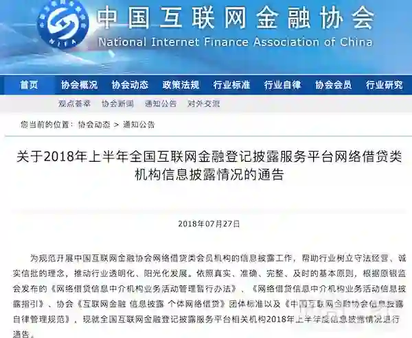 附:2018年上半年全国互联网金融登记披露服务平台网络借贷类机构信息披露情况通告