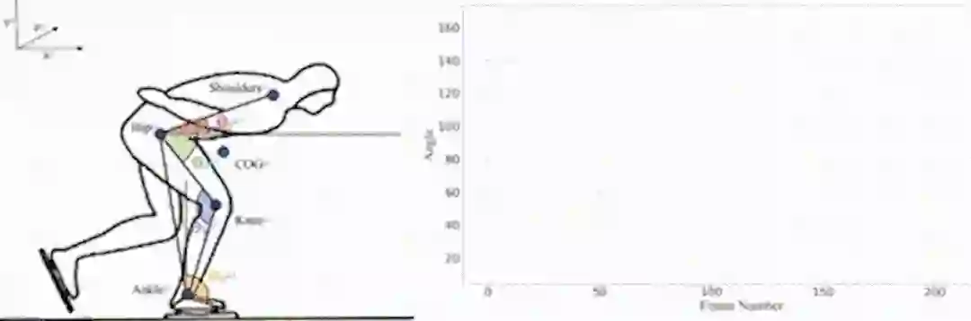 有了数据,可以得到核心关节、膝关节、髋关节的旋转角度和角速度,以及运动员的质心的轨迹和加速度,帮助运动员分析姿态对蹬冰质量和效率的影响。