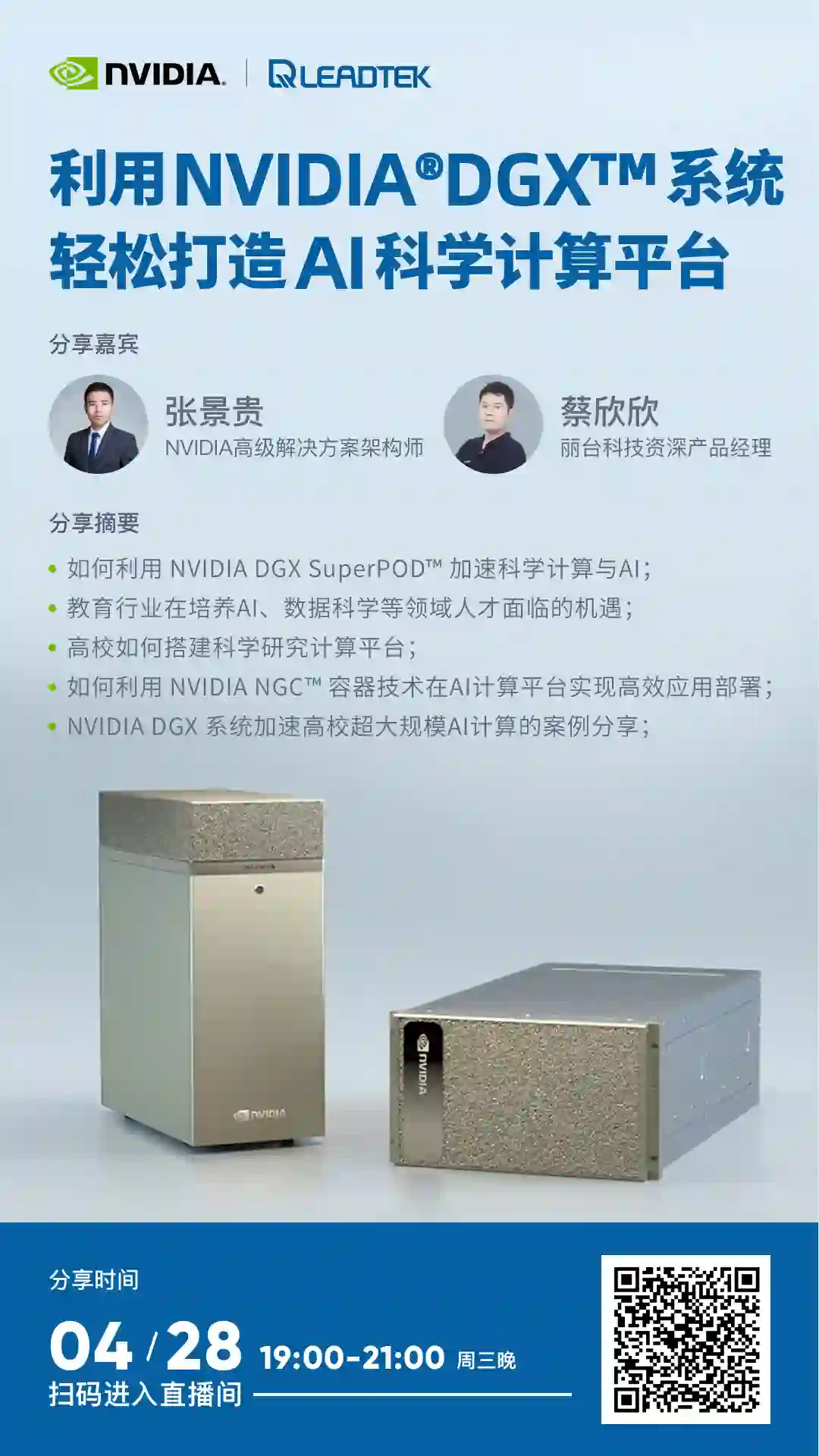 ,4月28日,丽台科技携手英伟达推出《利用 NVIDIA DGX 系统轻松打造 AI 科学计算平台》公开课
