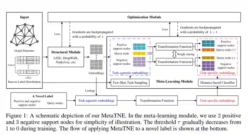 摘要:我们研究了具有少量新颖标签的图节点分类问题,它具有两个独特的特性:(1)图中出现了新颖标签;(2)新颖标签仅具有几个用于训练分类器的代表性节点。对这个问题的研究具有指导意义,并且与许多应用相对应,例如对在线社交网络中只有几个用户的新组建的推荐。为了解决这个问题,我们提出了一种新颖的元变换网络嵌入框架(MetaTNE),该框架由三个模块组成:(1)一个结构模块根据图结构为每个节点提供潜在的表示。(2)元学习模块以元学习的方式捕获图结构和节点标签之间的关系作为先验知识。此外,我们引入了一种嵌入转换函数,以弥补元学习直接使用的不足。从本质上讲,可以将元学习的先验知识用于促进少样本新颖标签的学习。(3)优化模块采用简单而有效的调度策略来训练上述两个模块,并在图结构学习和元学习之间取得平衡。在四个真实数据集上进行的实验表明,MetaTNE相对于最新方法具有巨大的改进。