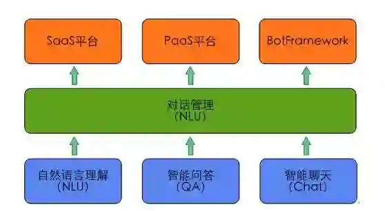典型的智能对话交互框架如图1所示。其中,语音识别模块和文本转语音模块为可选模块,比如在某些场景下用户用文本输入,系统也用文本回复。自然语言理解和对话管理是其中的核心模块,广义的自然语言理解模块包括对任务类、问答类和闲聊类用户输入的理解,但在深度学习兴起后,大量端到端(End-to-End)的方法涌现出来,问答和聊天的很多模型都是端到端训练和部署的,所以本文中的自然语言理解狭义的单指任务类用户输入的语义理解。在图2所示的智能对话交互核心功能模块中,自然语言理解和对话管理之外,智能问答用来完成问答类任务,智能聊天用来完成闲聊类任务。在对外输出层,我们提供了SaaS平台、PaaS平台和BotFramework三种方式,其中Bot Framework为用户提供了定制智能助理的平台。
