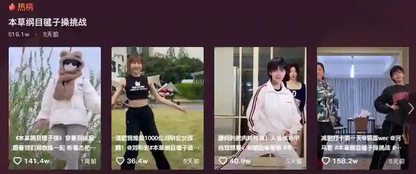 而真正让刘畊宏获得全民知名度的,那就不得不提他自创的《本草纲目》毽子操。