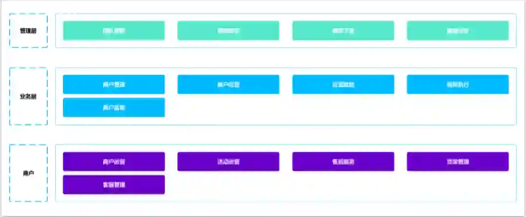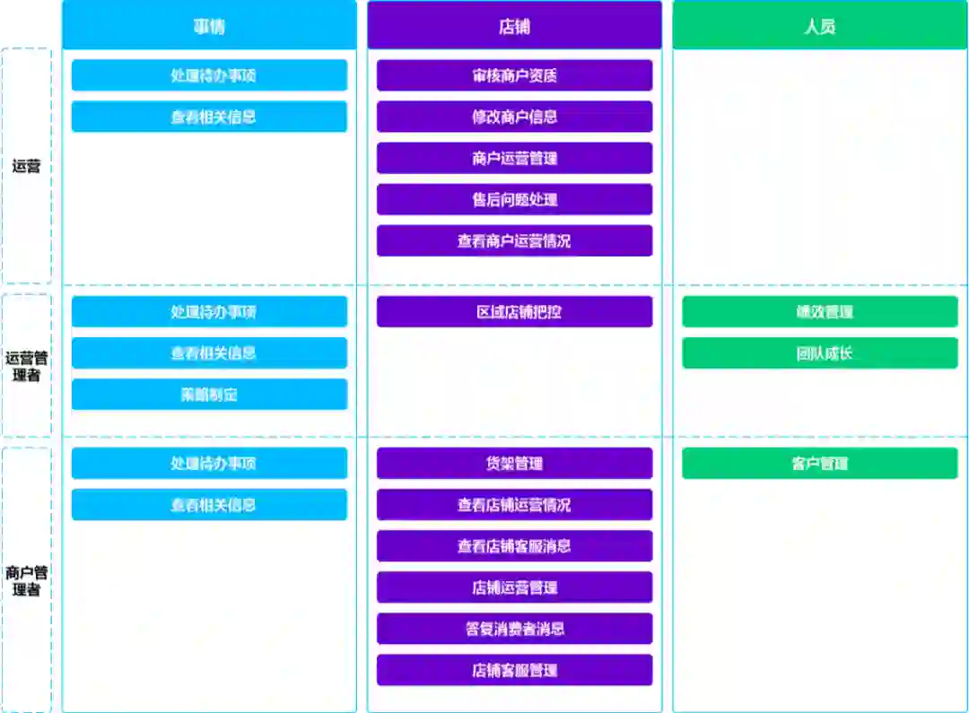 从全局往下看:在整个业务大图中找到商户管理的定位在哪里,接着①明确层级:确定商户管理是在核心链路还是支撑服务里,介入了哪些服务中,提供了哪些能力;②明确角色:明确商户管理所服务的对象和参与商户管理运行的角色有哪些;③明确价值:商户管理在整个业务中产生的价值。