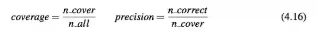 为了评估动词模板的效果,实验使用了两个评测指标:(1)coverage,表示方法可以找到多少对应于自然语言中的动词短语的模板;(2)precision,表示有多少动词短语和它对应的模板正确匹配。实验通过以下的公式来计算这两个指标: