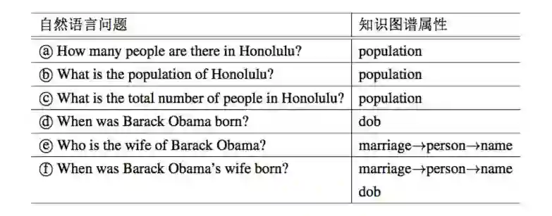 表 1.1:自然语言问题及其在知识图谱中的属性对应。
