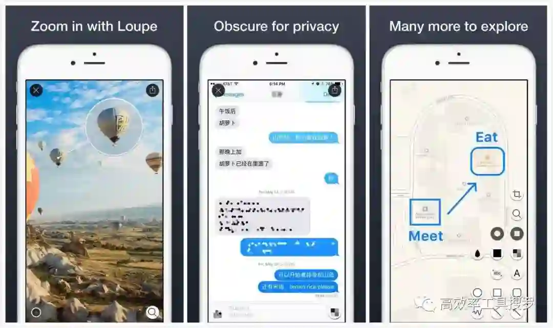 还支持多种马赛克效果,还有放大镜功能,可以将某一处高亮显示出来。