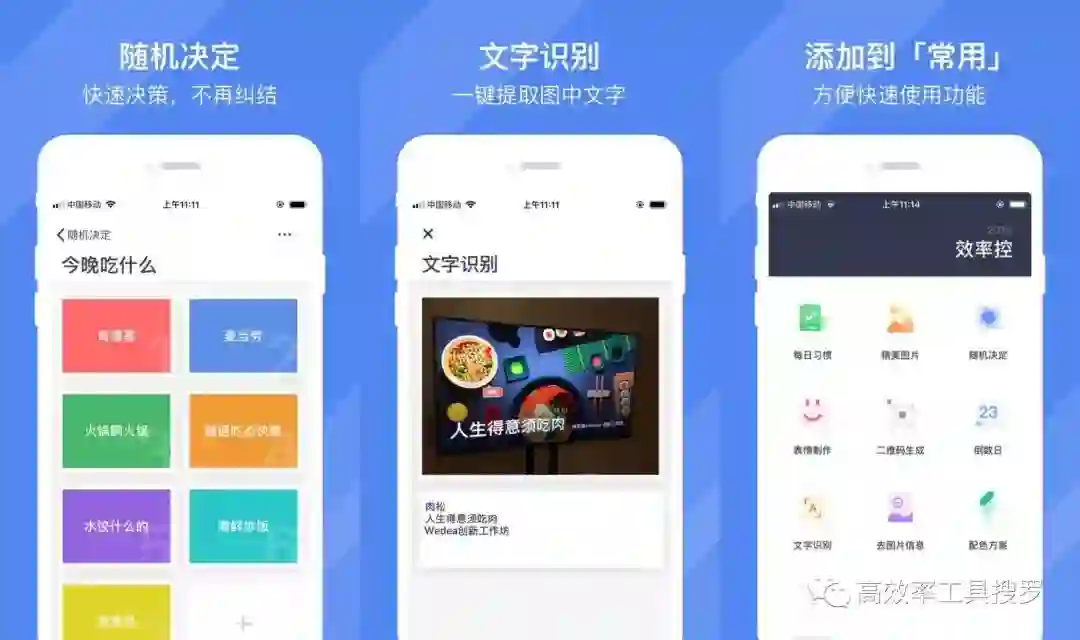 使用它可以用来习惯养成,表情制作,二维码生成,倒数日,文字识别,配色方案等等。