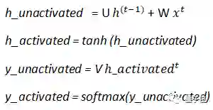 U代表输入权重、W代表内部状态权重,V代表输出权重。