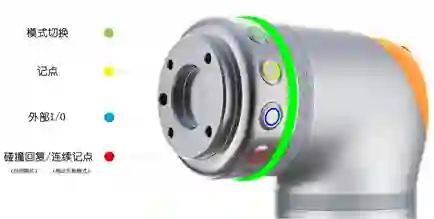 基于DS301、401和402的IO和伺服控制协议,ECR5协作机器人通信稳定可靠。采用通用的末端接口和三色环形灯带,实时显示机器人状态;末端按键,可脱离示教器示教;末端通信接口,支持第三方工具操作方便实用。
