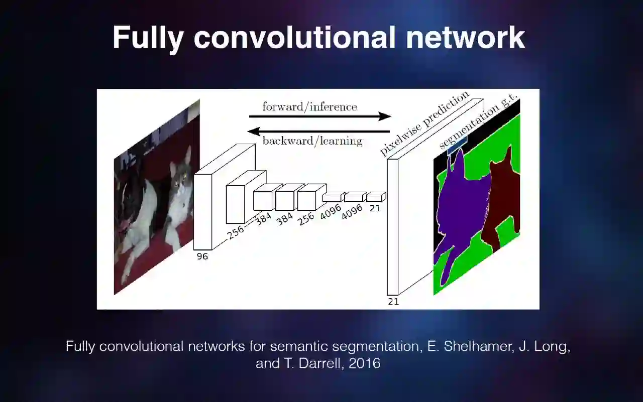 还有一个比较重要的工作是全卷积网络(Fully Convolutional Network),它可以做比较合理的分割。这种网络结构本身是正常的,但是最后输出到一个跟输入是相当大小的 pixel-wise prediction。它就可以去对每个 pixel 做一个 lable,就是给一个分类,比较适合做分割。我觉得这个工作比较好,虽然网络结构并不是特别特殊,但是我还是把它列在这里。