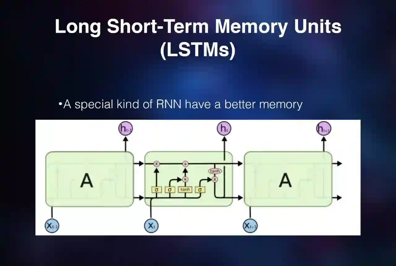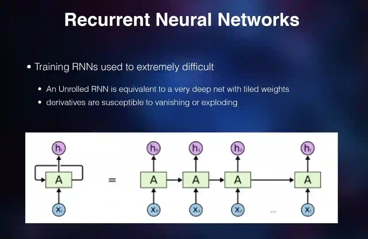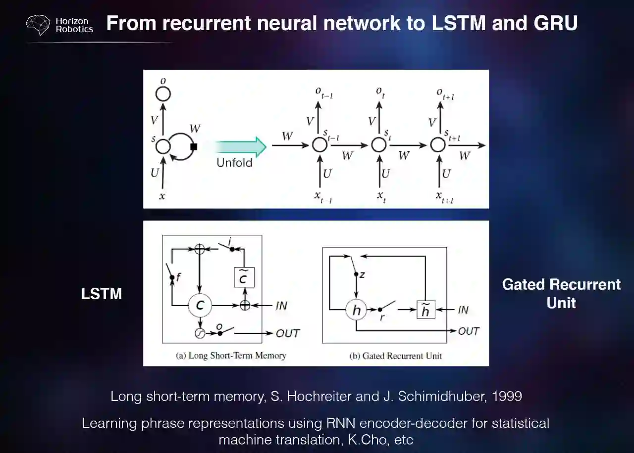 概念上简单地来说,我们加了一个状态,那么每个神经网络神经元就记住了一个数,那么这个数会对多长时间的预测有影响呢?是可以记住一个时间单位,还是十个时间单位还是一百个时间单位?从道理上讲,其实没有限制,你可以记录很多时间单位,但实际上其实是很难控制的。这里的一个改进就是 LSTM,它把长时间的记忆跟短时间记忆比较显式地在网络结构中描述出来。