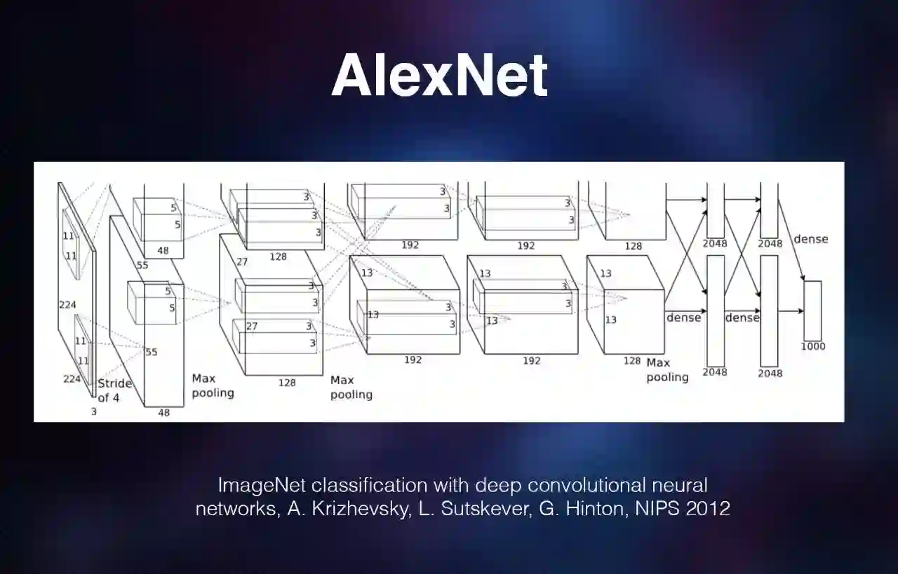 到了 2012 年的 AlexNet,结构本身没有本质性的提高,但是规模大了很多。